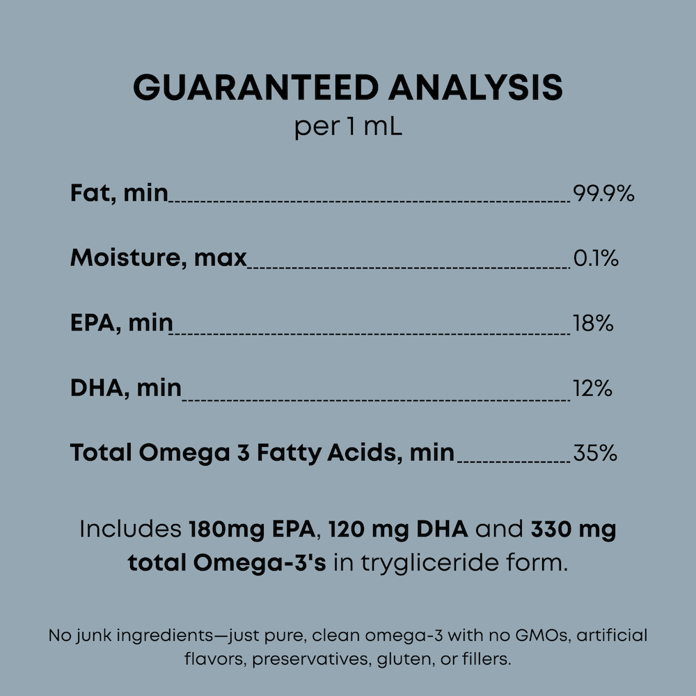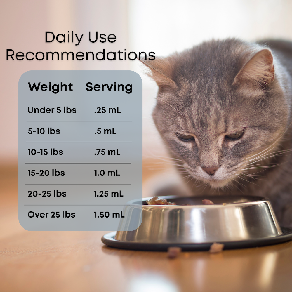 Our formula is clean, mild in scent, and palatable for even picky eaters. Just a few drops added to wet or dry food each day—no mess, no stress. The included dropper makes dosing simple, and the dark glass bottle helps preserve freshness naturally.
