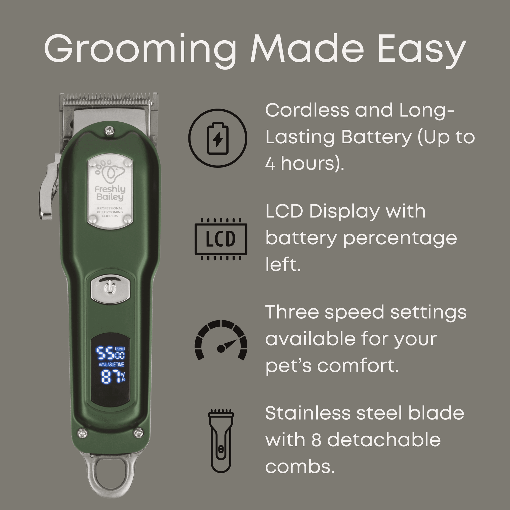 Make grooming stress-free and effective with the Freshly Bailey Hair Clippers for Dogs and Cats—specially designed to cut through even the thickest, coarsest, and most matted fur. Whether you're grooming a Poodle, Aussie, Great Pyrenees, Maine Coon, or Persian, these professional-grade clippers slice through dense hair with ease, saving time and effort.